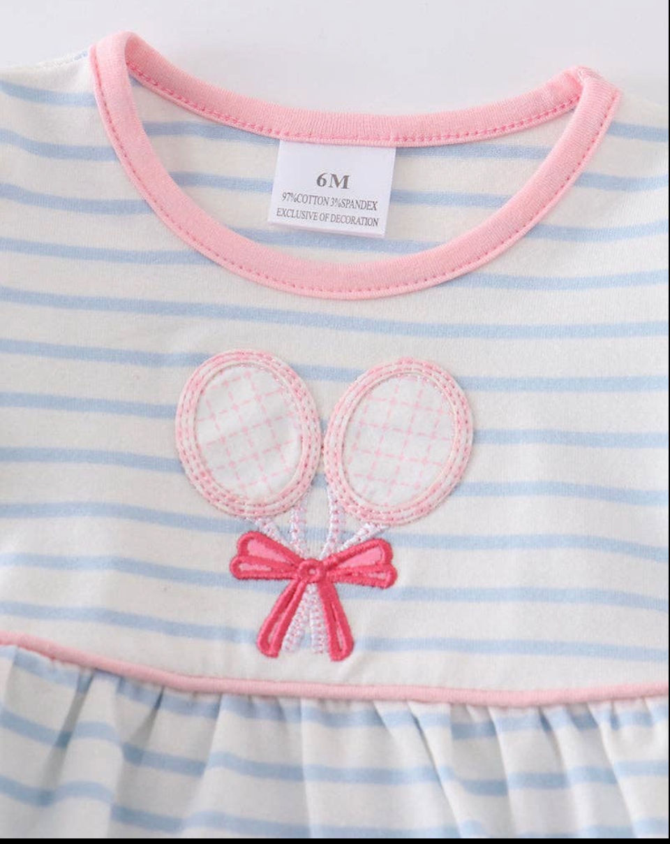 HoneyDew - Blue Strip Badminton Racket Appliqué Baby Romper