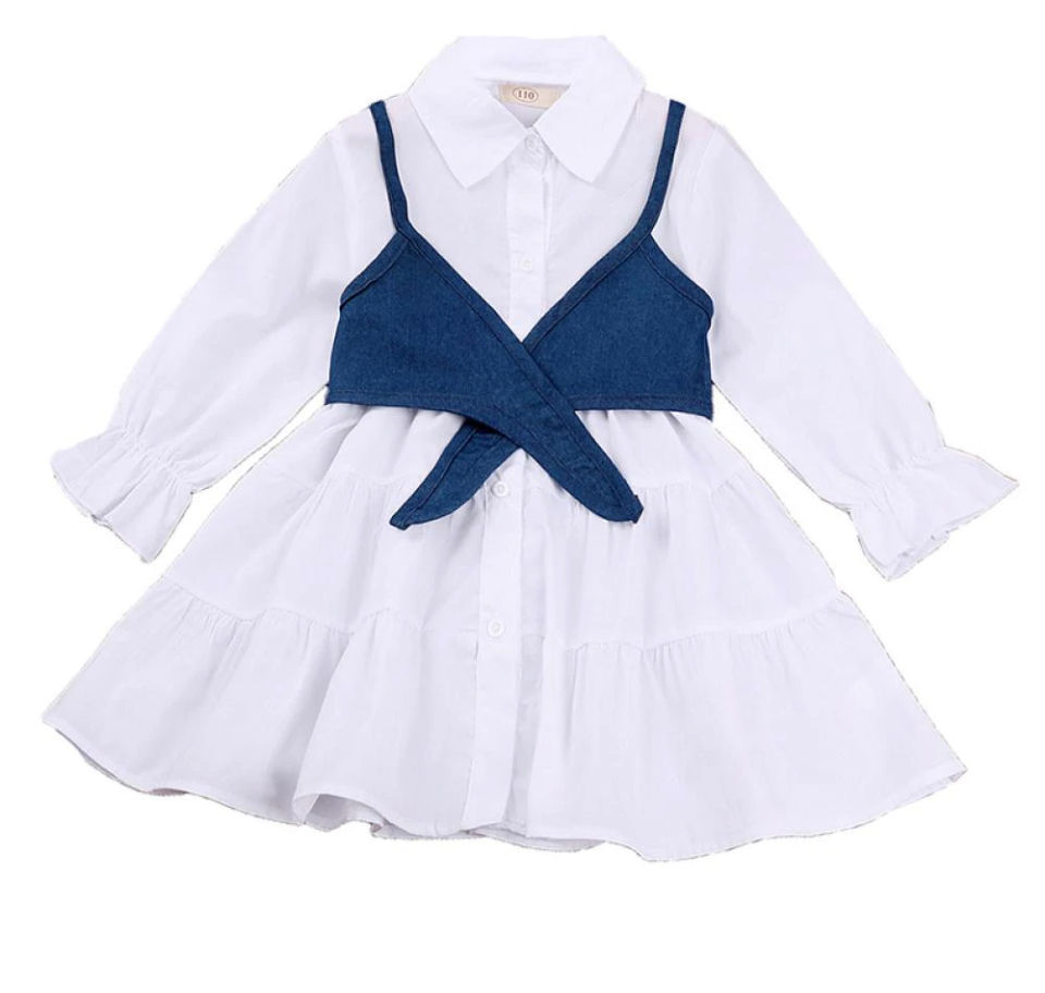 Girls Spring and Autumn Long-sleeve Solid White T-shirt Dress